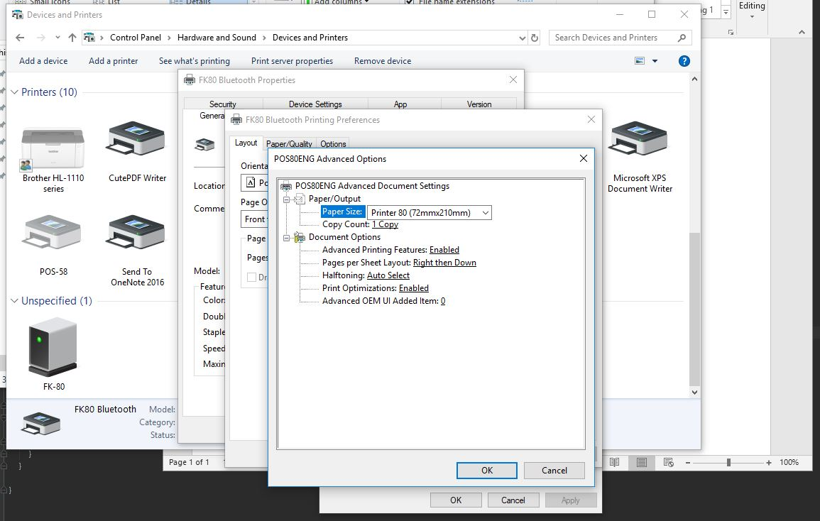 Take note of the paper sizes available as you will likely need to try a few to get it working flawlessly
